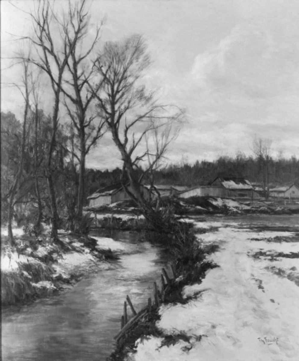 Theodor (Eugen Christoph) Feucht, Bach in Giesing, vor 1940, Bayerische Staatsgemäldesammlungen – Neue Pinakothek, URL: https://www.sammlung.pinakothek.de/en/artwork/apG9ORvxZn (Last updated on 10.10.2025)
