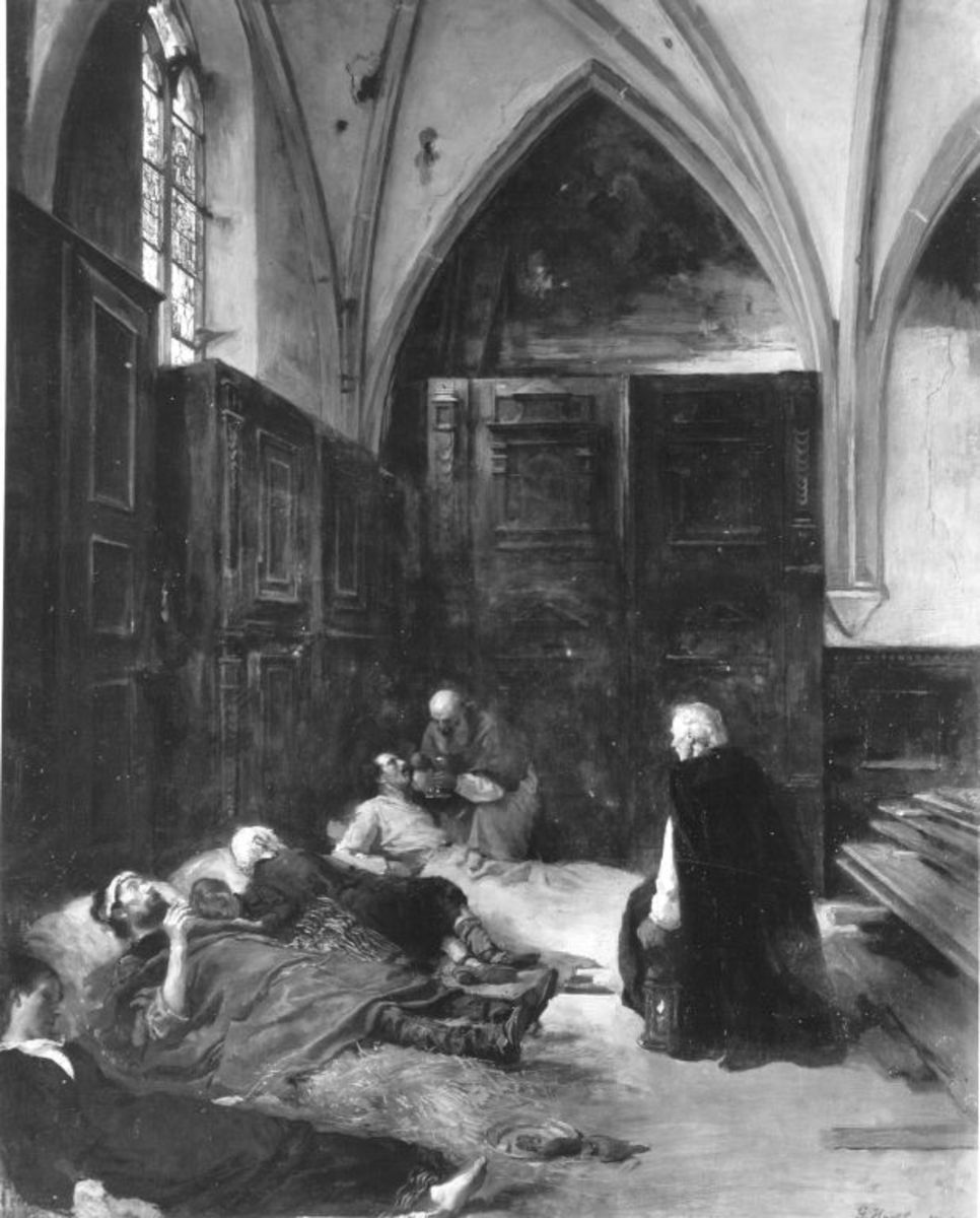Gabriel von Hackl, Der hl. Karl Borromäus bei den Pestkranken, wohl 1895, Bayerische Staatsgemäldesammlungen – Neue Pinakothek, URL: