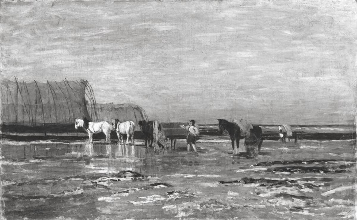 Marie von Parmentier, Pferde im Wattenmeer, 1875, Bayerische Staatsgemäldesammlungen – Neue Pinakothek, URL: