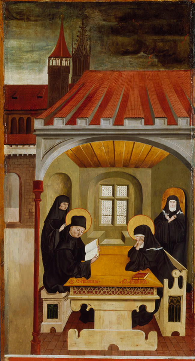 Gabriel Mäleskircher, Benediktsaltar: Die hll. Benedikt und Scholastika und das Wunder des Unwetters, 1475, Staatsgalerie in der Burg zu Burghausen, URL: https://www.sammlung.pinakothek.de/en/artwork/jWLpBKa4KY (Last updated on 10.10.2025)