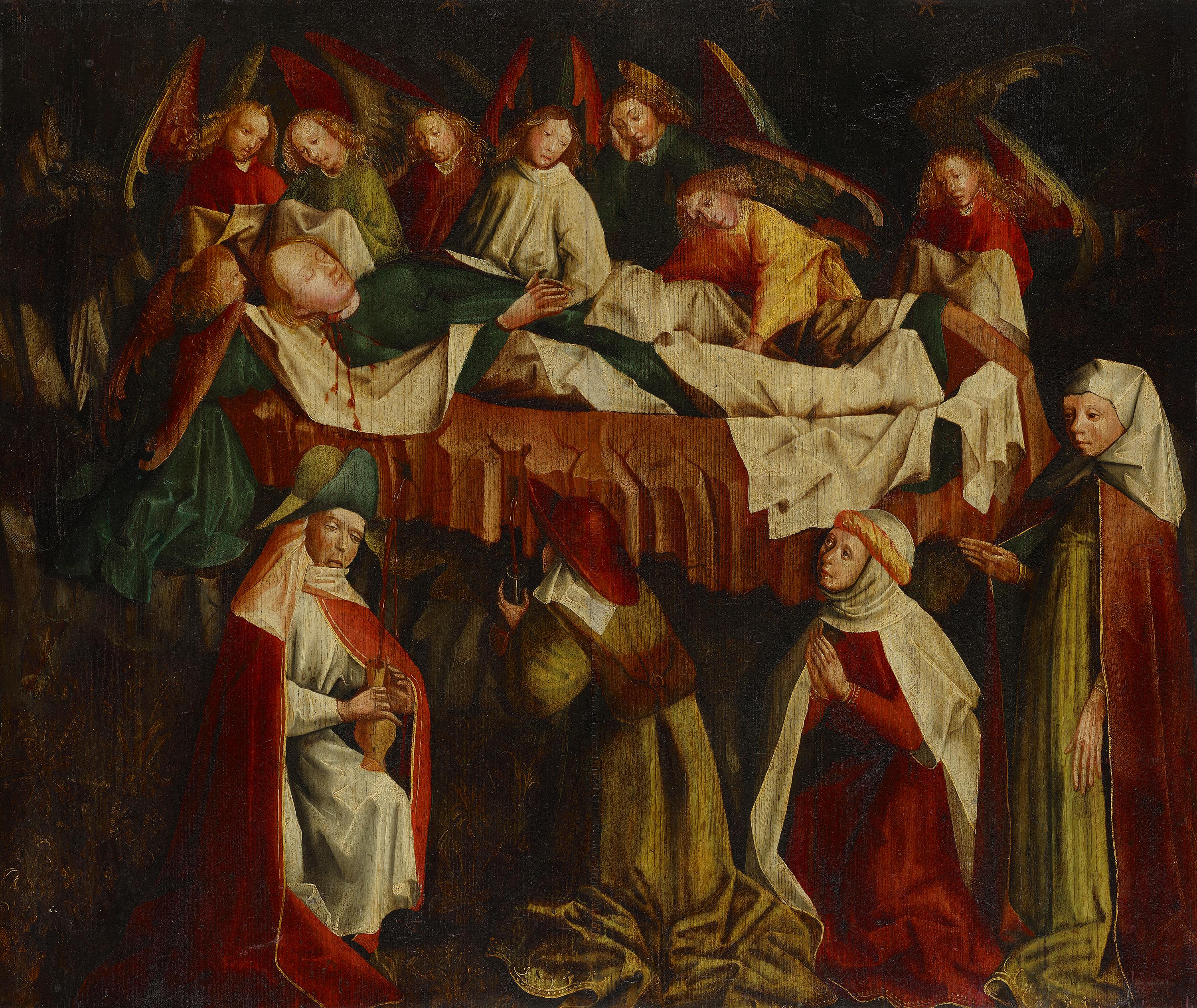 Alpenländisch um 1470/80, Bestattung der hl. Katharina, um 1470/80, Bayerische Staatsgemäldesammlungen – Alte Pinakothek, URL: