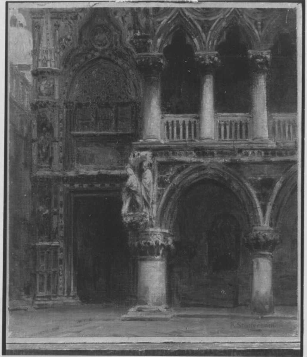 R. Stutterheim, Eingang zum Dogenpalast, 19. Jahrhundert, Bayerische Staatsgemäldesammlungen – Neue Pinakothek, URL: https://www.sammlung.pinakothek.de/en/artwork/qZMLJQXxJv (Last updated on 10.10.2025)