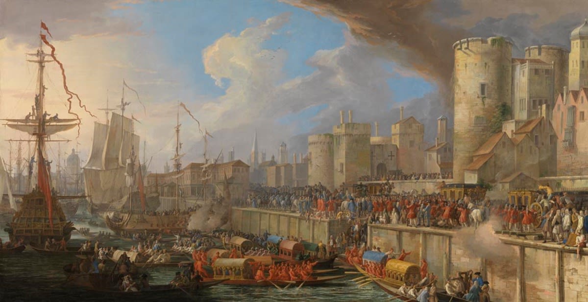 Luca Carlevarijs, Empfang der venezianischen Gesandten beim Tower in London, 1707, Staatsgalerie in der Residenz, URL: