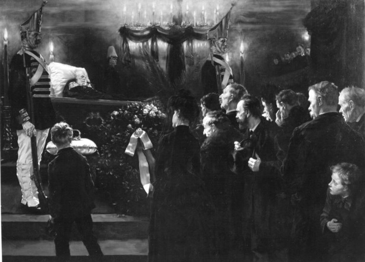 Arthur Kampf, Aufbahrung der Leiche Wilhelms I. im Dom zu Berlin, 1888, Bayerische Staatsgemäldesammlungen – Neue Pinakothek, URL: