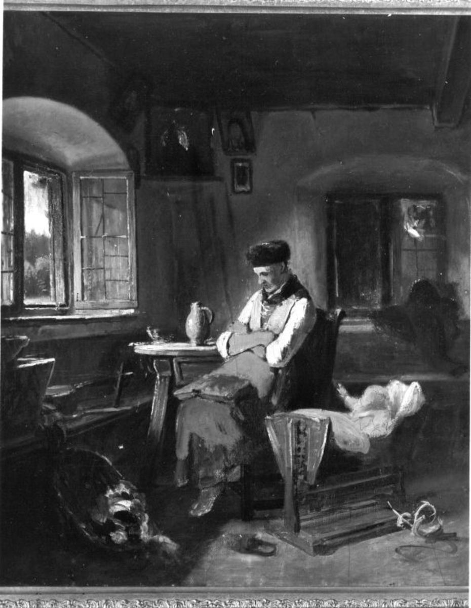 Karl von Enhuber, Die schlafende Großmutter bei ihrem Enkel, um 1850/60 (?), Bayerische Staatsgemäldesammlungen – Neue Pinakothek, URL: