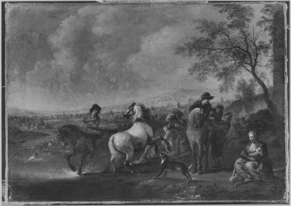 Philips Wouwerman(Art des), Die Furt, Staatsgalerie im Schloss Johannisburg, URL: